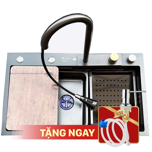 Chậu rửa bát chén inox nano kèm vòi KAGOL KNB7545T một hố, có vòi thác (kt:750x450x220)