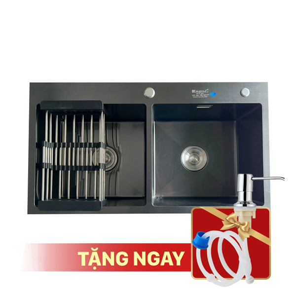 Chậu rửa bát KAGOL KND8245 hai hố cân Nano đen (820x450x240 mm)